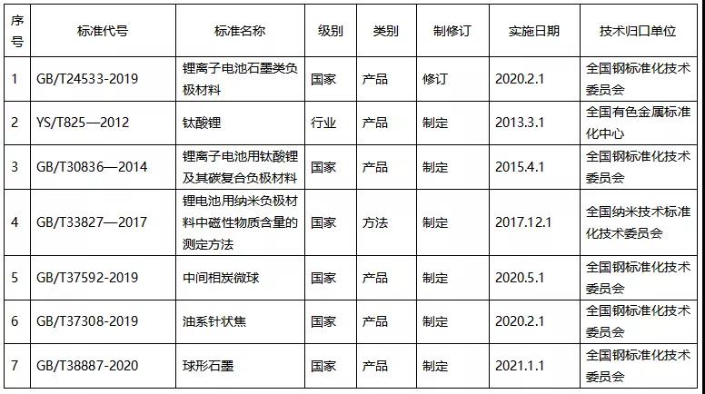 我國已頒布的鋰離子電池負極材料相關標準