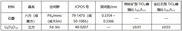 石墨和Li4Ti5O12的晶體結構參數