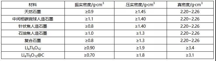 負極材料標準中的密度要求