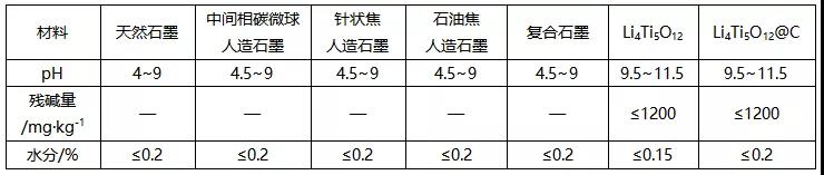 負極材料標準中的pH和水分要求