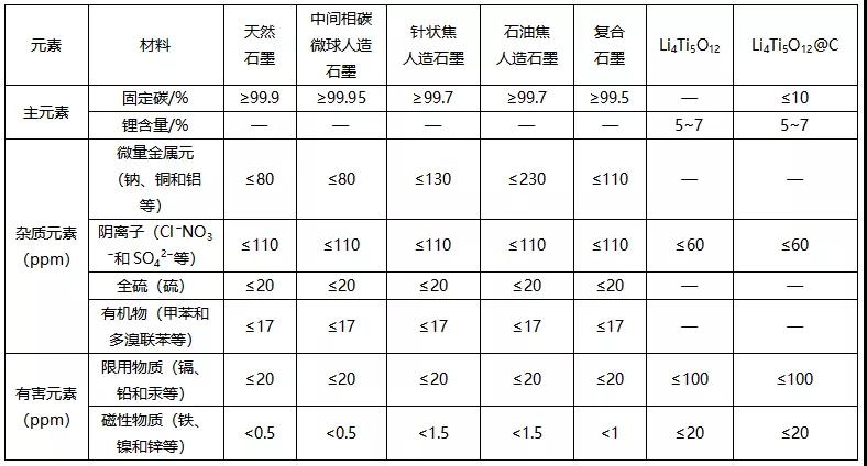 負極材料標準中對相關元素含量的要求