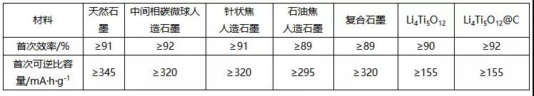 負極材料標準中對首次可逆比容量和首次效率的要求