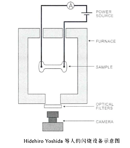 Hidehiro Yoshida等人對氧化釔陶瓷進行閃燒研究時,使用的樣品為狗骨頭型,用兩根鉑絲穿過狗骨頭樣品兩端的孔洞,并將其懸掛在管式爐的中央。通過鉑電極對樣品施加電場。在管式爐底部放置CCD相機,通過一系列光學過濾器記錄樣品的尺寸。