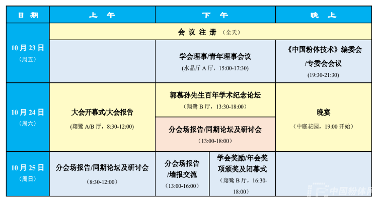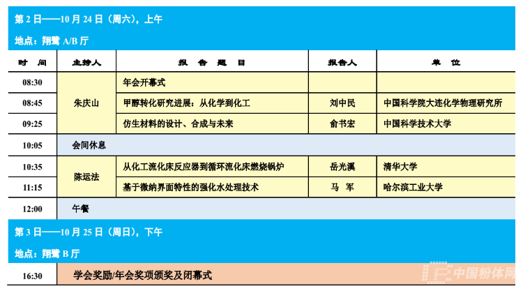 另外,中國顆粒學會理事會和青年理事會會議、中國顆粒學會期刊《中國粉體技術》編委會會議、學會獎勵頒獎會也將同期舉行。
