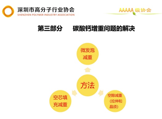 目前對(duì)于碳酸鈣增重問題的解決方法包括:微發(fā)泡減重、空芯填充減重以及空隙減重。