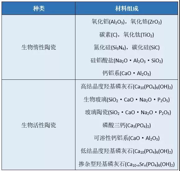 生物陶瓷分為生物惰性陶瓷與生物活性陶瓷兩類。