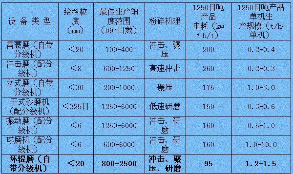 表3 國內干法生產重鈣超細粉體常用設備總體情況及電耗指標的比較