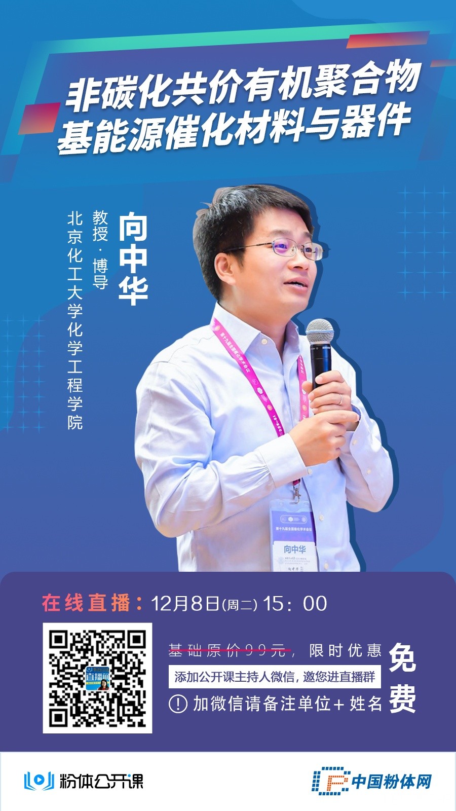 12月8日,中國粉體網(wǎng)旗下的粉體公開課平臺將邀請北京化工大學(xué)化學(xué)工程學(xué)院向中華教授向大家就非碳化共價有機聚合物基能源催化材料與器件做相關(guān)報告。該報告重點介紹非碳化共價有機聚合物基能源催化材料與器件在燃料電池領(lǐng)域的研究成果:圍繞燃料電池催化應(yīng)用的導(dǎo)電COP材料化工制備,提出催化劑低溫合成方法,結(jié)合過程強化手段,突破傳統(tǒng)高溫法難于可控定制合成的瓶頸,實現(xiàn)催化劑活性中心可控有序排列及燃料電池器件示范應(yīng)用。