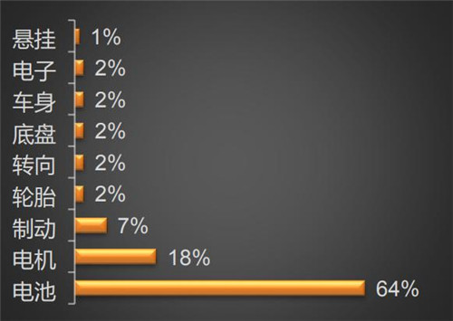 有數據顯示,消費者對新能源汽車投訴的質量問題主要集中在鋰電池,占比超過一半,高達64%。