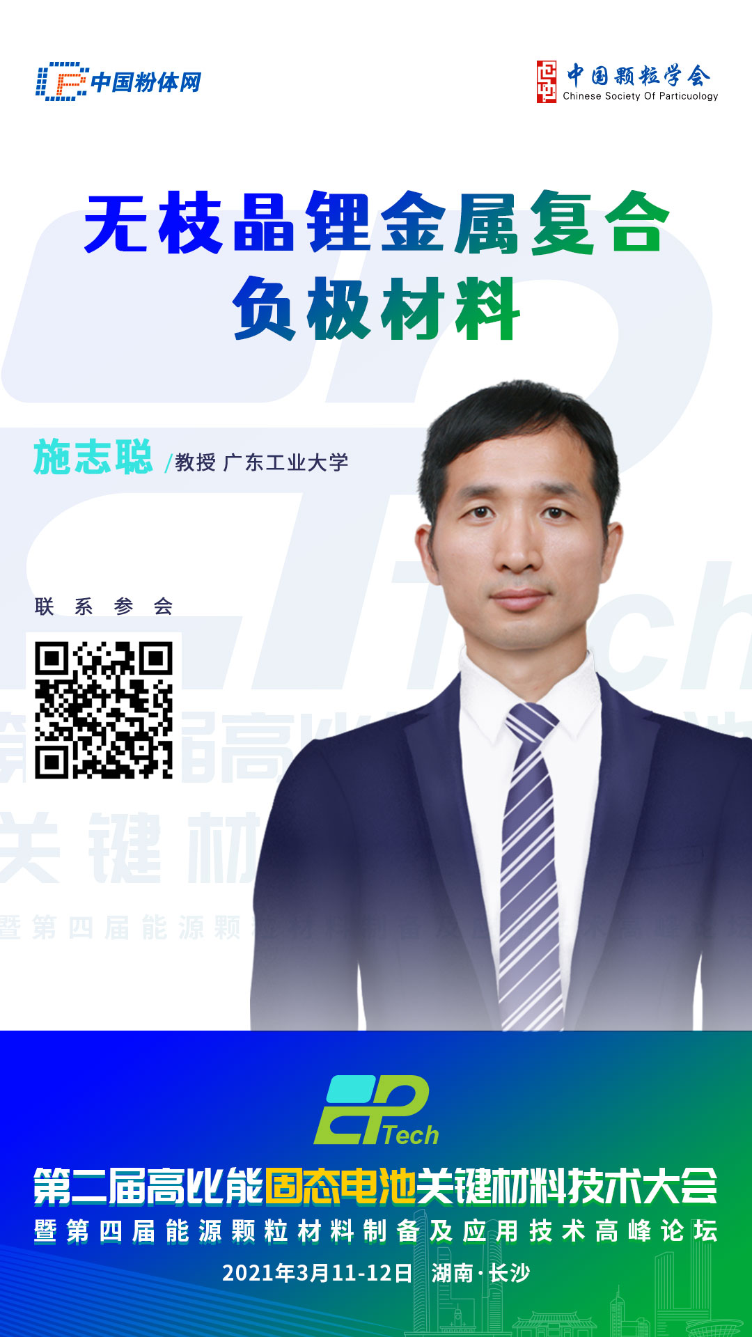2021年3月11-12日,由中國粉體網(wǎng)、中國顆粒學(xué)會能源顆粒材料專委會主辦,長沙礦冶研究院先進(jìn)材料研究所協(xié)辦的第二屆高比能固態(tài)電池關(guān)鍵材料技術(shù)大會將在長沙吉美國際會展酒店隆重舉行,屆時,施志聰教授將帶來報告《無枝晶鋰金屬復(fù)合負(fù)極材料研究》,與參會嘉賓分享相關(guān)研究成果。