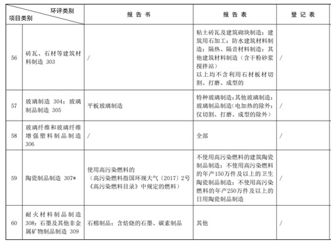 [導(dǎo)讀]  生態(tài)環(huán)境部:七項非金屬礦物制品業(yè)項目列入建設(shè)項目環(huán)境影響評價分類管理名錄。