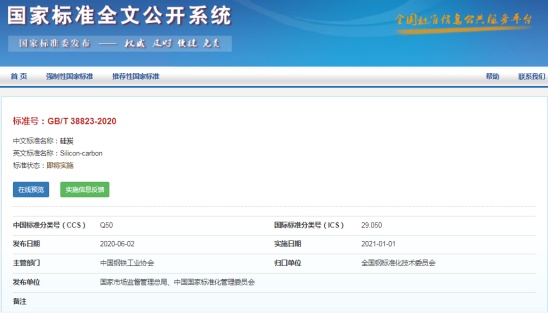 中國粉體網訊 從國家標準委獲悉,GB/T 38823-2020《硅炭》、GB/T 38824-2020《軟炭》、GB/T 38887-2020《球形石墨》將于2021年1月1日起正式實施。