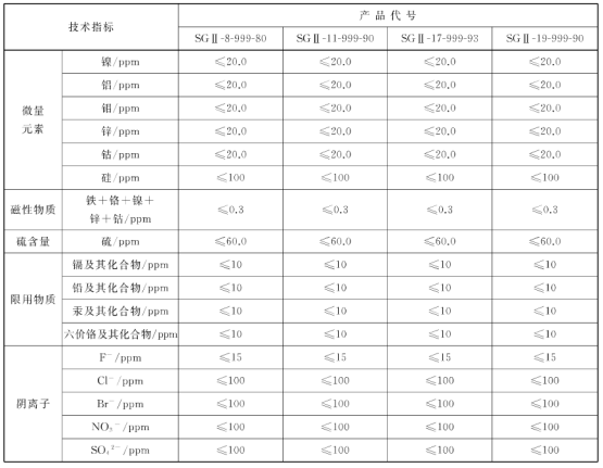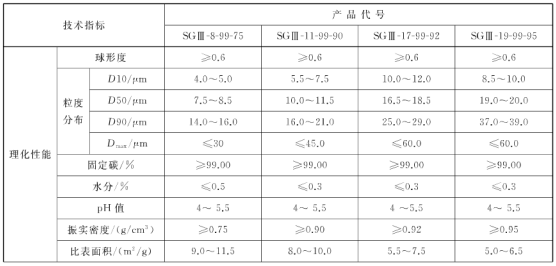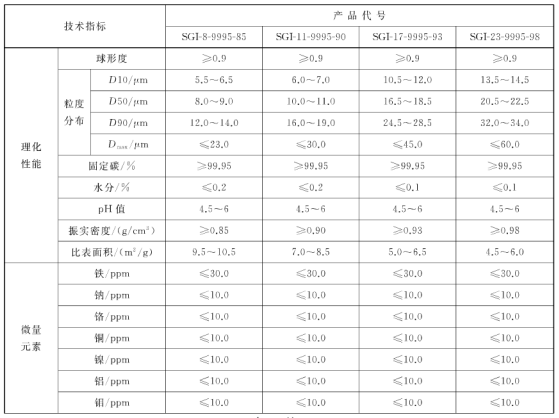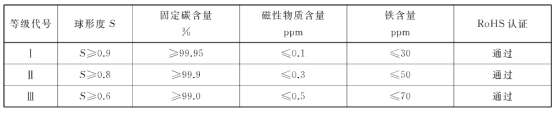 球形石墨用SG(spherical graphite)表示,其具體等級見表1。