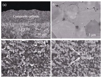 (a)復(fù)合陰極/LLZTO 電解質(zhì)界面的 SEM 照片;