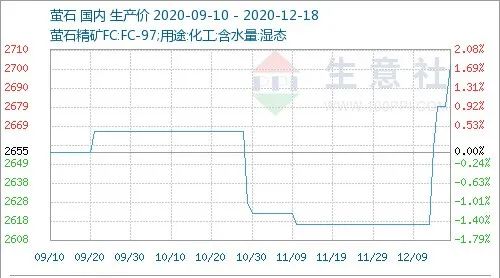 中國粉體網訊 據統計國內螢石價格走勢上漲,截止上周末國內螢石均價為2702.22元/噸,較周初價格2657.78元/噸上漲1.67%,同比下滑6.64%。