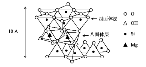 滑石粉的主要成分為含水硅酸鎂,滑石經粉碎后,用鹽酸處理,水洗,干燥而成滑石粉;蹖俟杷猁},化學結構Mg6(Si2O5)4(OH)4