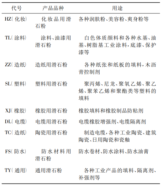 纖維狀的滑石粉伴生透閃石、閃石和蛇紋石;非纖維狀滑石常含有松節油和碳酸鹽;塊狀滑石粉滑石含量最高,可達70%以上,常作為藥用。根據滑石粉的粉碎粒度,國家標準將其劃分為磨細滑石粉、微細滑石粉和超細滑石粉。