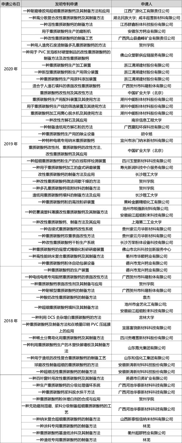 中國(guó)粉體網(wǎng)訊 近年來,國(guó)內(nèi)企業(yè)圍繞重質(zhì)碳酸鈣的加工制備、改性、應(yīng)用等進(jìn)行了大量工作。2018-2020年申請(qǐng)專利中,尤其以廣西、浙江、安徽的企業(yè)居多。