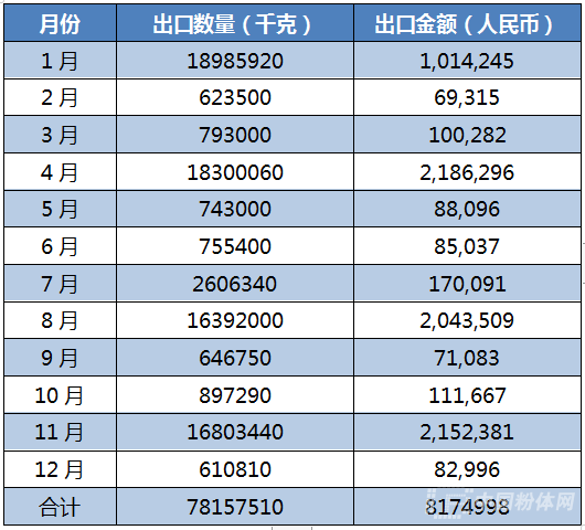 數(shù)據(jù)來(lái)源:海關(guān)總署,中國(guó)粉體網(wǎng)整理