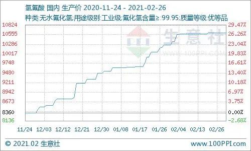 2月份螢石價格走勢小幅上漲,近期廠家反映螢石訂單情況一般,場內(nèi)商家出貨情況正常,場內(nèi)螢石貨源供應(yīng)略顯緊張,場內(nèi)價格走勢上漲。國內(nèi)螢石廠家運行穩(wěn)定,場內(nèi)礦山和浮選裝置開工維持低位,螢石場內(nèi)走貨情況一般,螢石市場價格小幅上漲。2月份下游氫氟酸市場價格走勢上漲,終端下游按需采購為主,截止月末內(nèi)蒙古地區(qū)97螢石濕粉價格在2500-2700元/噸,福建地區(qū)97螢石濕粉商談主流在2700-2900元/噸,河南地區(qū)97螢石濕粉價格在2700-2900元/噸,江西地區(qū)97螢石濕粉價格在2700-2900元/噸,近期國內(nèi)螢石價格小幅上漲。