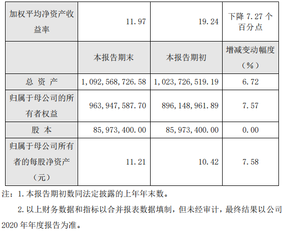 2020年度主要財務數(shù)據(jù)和指標