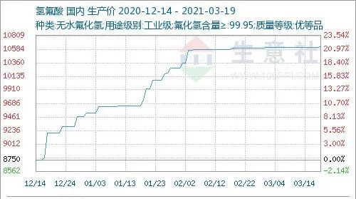 綜合來(lái)看,下游制冷劑行業(yè)行情小幅好轉(zhuǎn),加之近期氫氟酸市場(chǎng)價(jià)格有上漲趨勢(shì),加之螢石場(chǎng)內(nèi)供應(yīng)略顯緊張,生意社分析師陳玲認(rèn)為短期內(nèi)螢石市場(chǎng)價(jià)格或?qū)⑿》吒摺?/p>