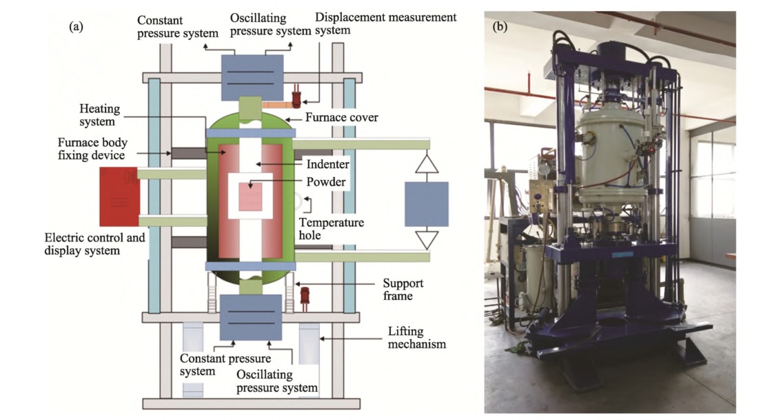 (振蕩壓力燒結設備示意圖與實物圖)