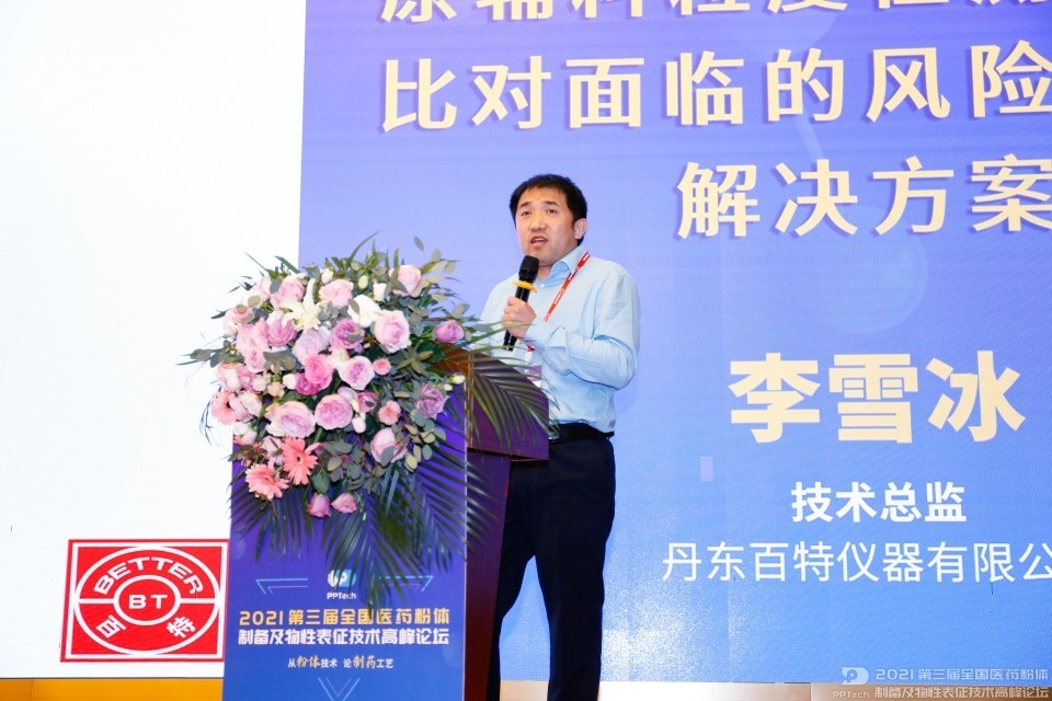 丹東百特儀器有限公司技術總監李雪冰博士做《原輔料粒度檢測和數據比對面臨的風險和相關解決方案》報告