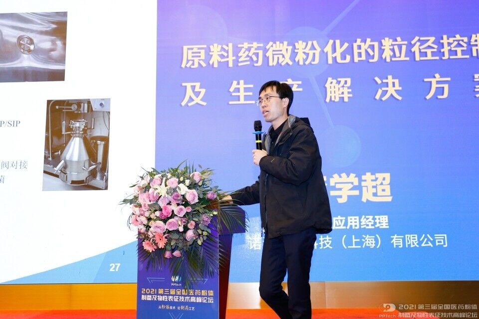 諾澤流體科技(上海)有限公司產品應用經理李學超做《原料藥微粉化的粒徑控制及生產解決方案》報告