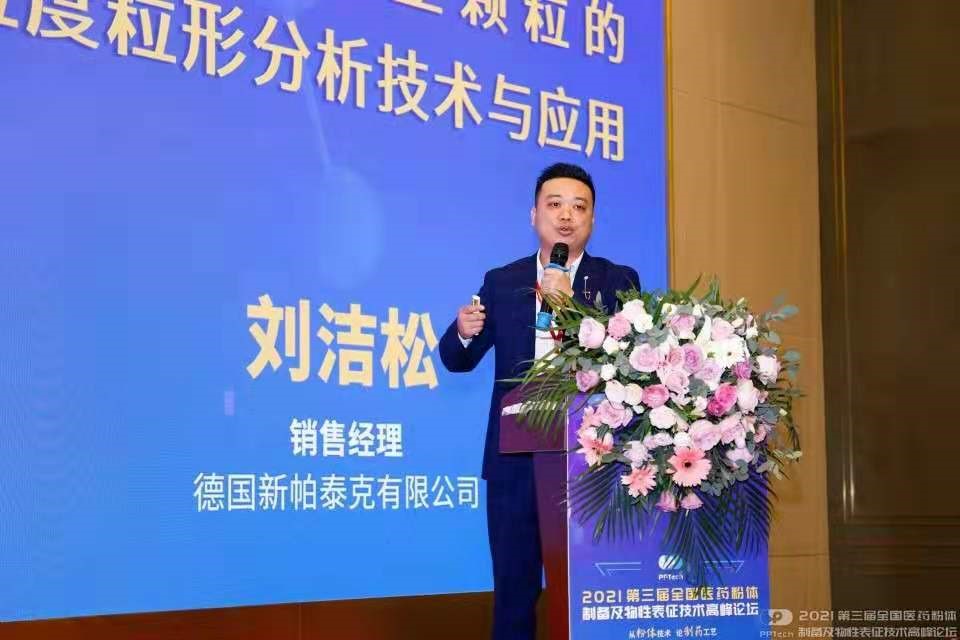 德國新帕泰克有限公司銷售經理劉潔松做《不同藥物劑型顆粒的粒度粒形分析技術與應用》報告