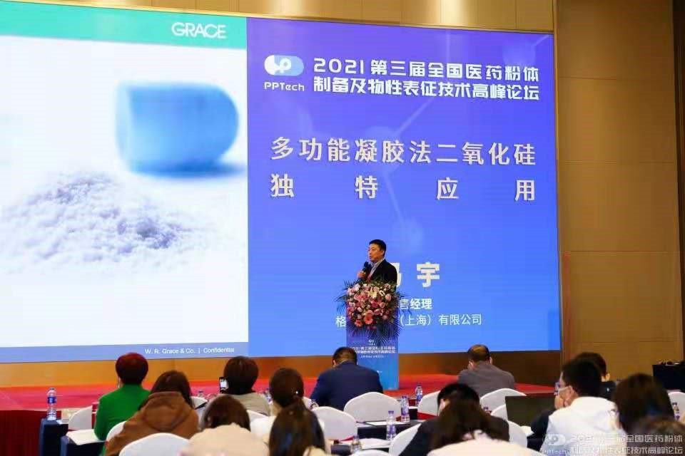 報告中,馮經理著重講述Grace凝膠二氧化硅在藥用輔料領域不同于其他類型二氧化硅的獨特的功能性,并從防潮保護到固體吸附劑,以及作為藥物溶解性提升的解決方案。