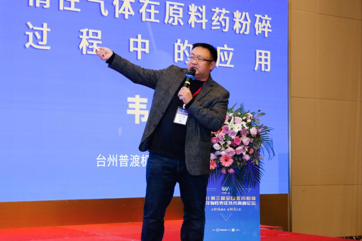 臺州普渡機械設備有限公司韋廣海總經理做《原料藥粉碎安全防護-惰性氣體在原料藥粉碎過程中的應用》報告