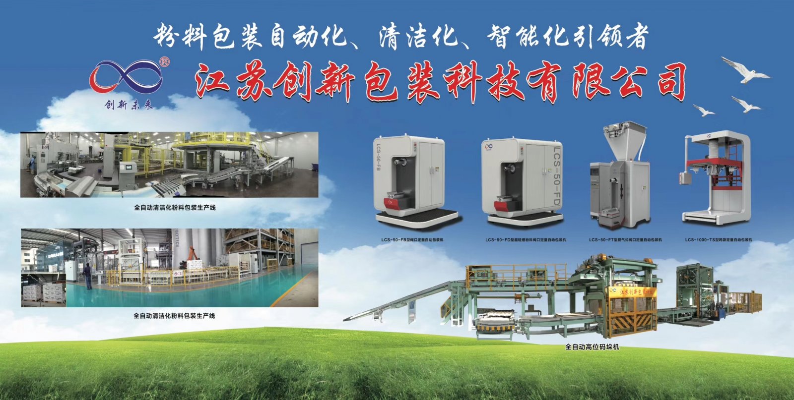 江蘇創新包裝科技有限公司作為粉料包裝智能化、清潔化的引領者,主要生產定量自動包裝機、全自動包裝碼垛生產線以及閥口包裝袋等三大系列產品。在電池材料等黏性粉料、含氣粉料、超輕細粉料包裝領域填補多項國內空白。