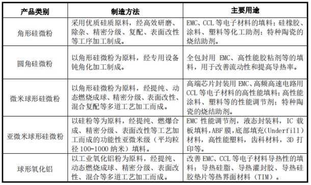 聯瑞新材產品屬于新材料行業。其以硅基氧化物填料、鋁基氧化物球形填料為核心產品的功能性陶瓷粉體填料,具有技術新、工藝新、應用新、測試條件復雜且更新快等特點,屬于新型的跨領域、跨學科、跨專業的尖端機能材料。產品應用于電子電路基板、芯片封裝材料、新型絕緣制品、導熱界面材料、膠粘劑、蜂窩陶瓷、3D打印、齒科材料等行業,服務于5G裝備、消費電子、汽車工業、航空航天、特高壓傳輸、增材制造、齒科健康等領域。