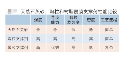 但樹脂覆膜支撐劑也存在以下問題:原料成本和工藝成本均高于陶粒支撐劑,經濟性不強;外層樹脂膜化學穩定性不強;在高閉合壓力下有可能會出現粘連現象,從而影響導流能力。