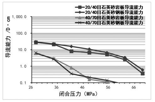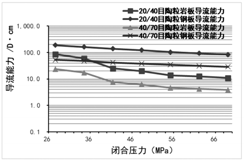 鋪砂濃度8kg/m2鋼板條件下不同支撐劑測試導流能力對比統計表