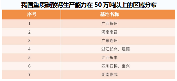 我國碳酸鈣生產地主要集中在廣西、安徽、廣東、浙江、四川、江西、河南、遼寧、湖北、湖南等省區,企業遍布28個省市,現已形成廣西賀州、來賓、河池和南寧,安徽池州,廣東連州、梅州和恩平,浙江建德和衢州,四川石棉、寶興和江油,江西永豐和德興,河南南召,遼寧海城,湖南靈武,河北井陘等規模生產基地。