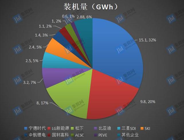 2021年一季度全球動力電池裝機量市場份額(來源:集微網整理)