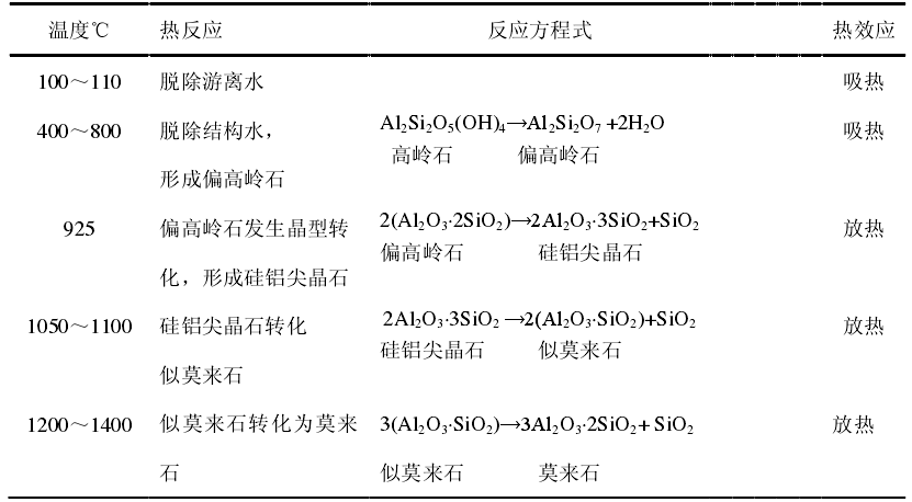 高嶺土在加熱過程中會發生脫水、分解、析出新物相等物化變化,較為復雜,一般認為,高嶺土在加熱過程主要包括兩個階段:脫水階段和脫水后產物的轉化階段。