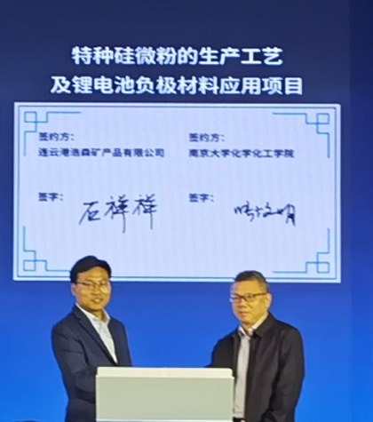 中國粉體網訊 據中國粉體網獲悉,2021年5月13日,連云港浩森礦產品有限公司與南京大學“特種硅微粉生產工藝與鋰電池負極材料應用”簽約項目成功!