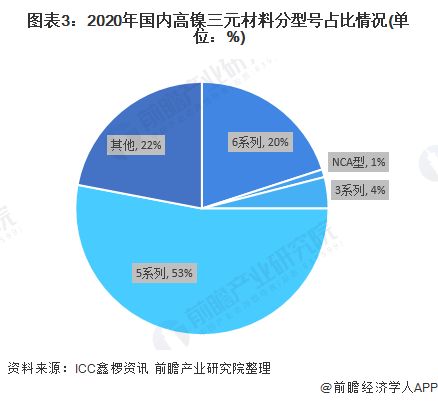 從三元正極材料產(chǎn)品型號結(jié)構(gòu)來看,2020年三元材料市場仍以5系及以下型號為主,但5系及以下材料占比同比下降9個百分點;高鎳8系材料占比同比提升9個百分點。