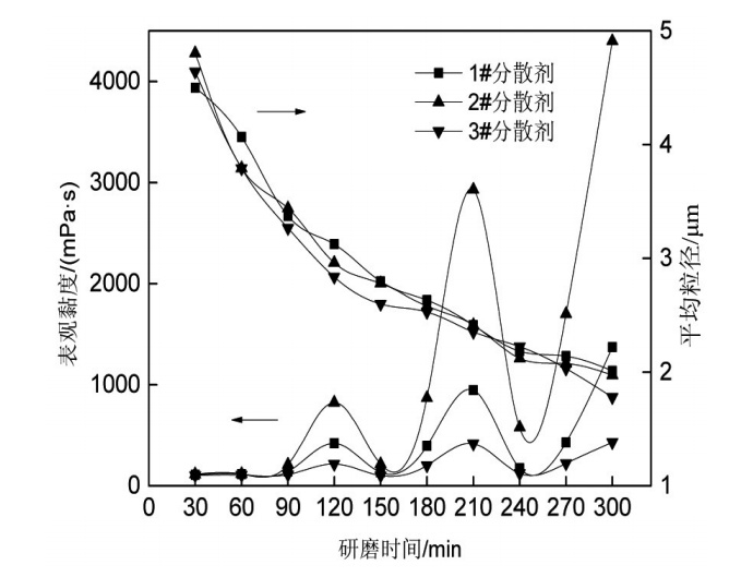 3、不同分散劑對碳酸鈣研磨效果的影響