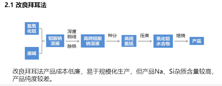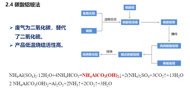 (4)鋁酸鈉溶液種分制備低堿氫氧化鋁,活化焙燒-弱酸洗滌,超細氧化鋁的純度可達99.999%。以工業氫氧化鋁為原料,通過水熱法轉化勃姆石,再活化焙燒;或通過轉化水合碳鋁銨,再活化焙燒,活性氧化鋁純度可達99.99%;