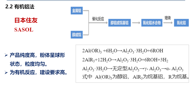 洪教授還詳細地分析了高純氧化鋁生產方法,并對不同方法的優缺點進行對比,對不同方法在工業上生產應用做了詳細的對比。