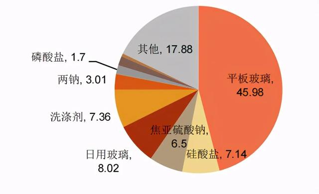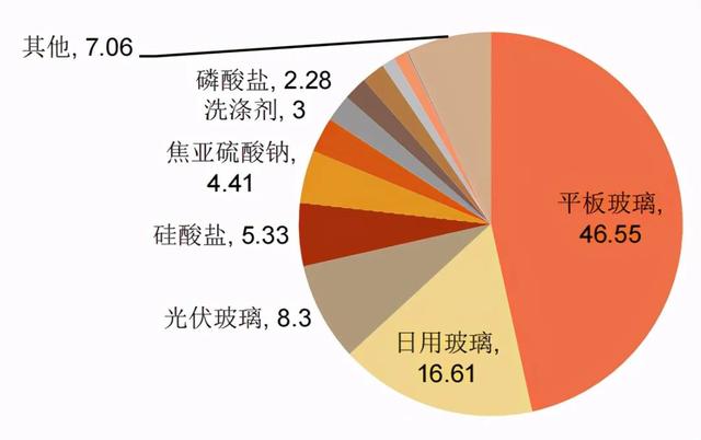 下游需求結構來看,玻璃是其最大的下游應用領域,占比接近70%,包括平板玻璃、日用玻璃以及光伏玻璃等。對比過去5年的下游需求結構,可以發現,平板玻璃一直是其最大下游應用領域,占比徘徊在45%附近,主要是由于平板玻璃需求與房地產領域密切相關,但是受房屋相關調控政策的影響,該領域需求增速放緩。