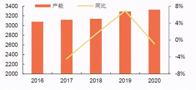 從新增產能來看,2023年之前國內純堿新增產能十分有限,甚至2021年產能還會有所減少,卓創資訊,蘇尼特、大連大化、中海華邦、廣宇、湘潭堿業這幾家企業長期處于停產中,而連云港堿業130萬噸純堿裝置計劃2021年年底前退出市場,預計到2021年年底國內純堿產能在3229萬噸,同比減少2.65%。長期需要關注內蒙古博源的項目,企業計劃2025年前后投產540萬噸產能,2026-2027年投產240萬噸產能,2023年以后供應端壓力開始逐漸增加。