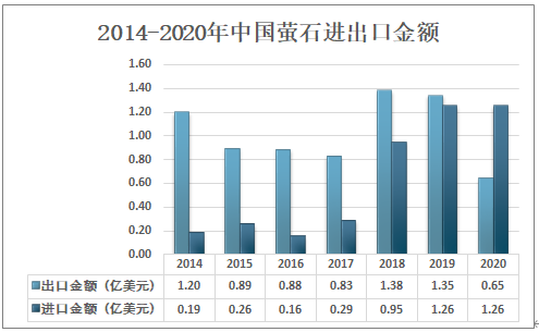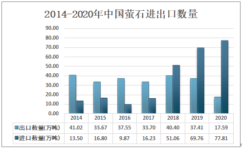 從上方螢石進出口數據我們發現,近年來中國在全球螢石資源儲量方面一直占據絕對優勢,但隨著來中國螢石的出口數量越來越少,反之,進口數量卻逐年增加,與此同步的進口金額開始增加,出口數量隨之減少。為此,開展螢石礦浮選的研究就顯得十分必要。