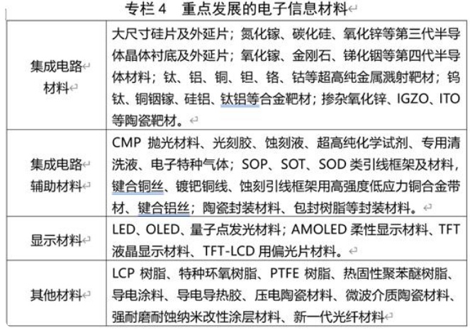 在做大做強五大領域方面,電子信息材料發展重點: