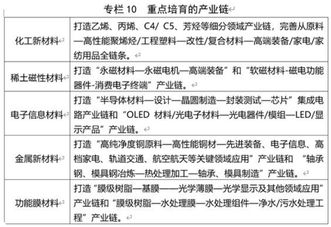 根據《規劃》,到2025年,寧波化工新材料、稀土永磁材料、電子信息材料、金屬新材料等領域集聚優勢更加突出,引領國內產業發展。在大尺寸單晶硅片、超高純電子材料、石墨烯、高品質電子化學品等部分細分領域達到國際先進水平。