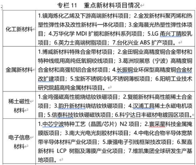 推進重大項目建設方面,寧波將加快推進鎮海煉化、萬華、英力士苯領、復能、博威、中電化合物半導體、長陽等一批重大項目建設,在產業基礎優勢明顯的化工新材料、稀土磁性材料、金屬新材料、電子信息材料、功能膜材料等領域推進一批行業領先水平的項目,進一步提升產業基礎高級化、產業鏈現代化。